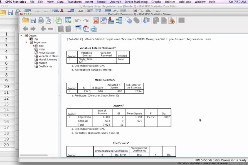Çoklu regresyon analizi, birden fazla bağımsız değişkenin bağımlı değişken üzerindeki etkisini incelemek için kullanılır. SPSS, çoklu regresyon analizi sürecini destekler.